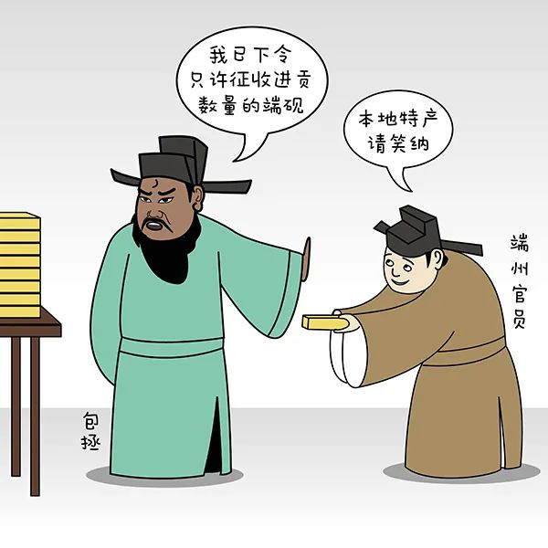 慶歷元年(1041年),包拯南下嶺南出任端州知府。端州自古以來以其端硯聞名于天下,為四大名硯之一,而當(dāng)時(shí)端州官場潛規(guī)則很盛,以給朝廷進(jìn)貢的名義征收數(shù)十倍的端硯來“孝敬”上級官員,以求來日上頭有人好做官。包拯到來,一心只為減輕百姓負(fù)擔(dān),下令只許征收進(jìn)貢數(shù)量的端硯,禁止多征一個(gè),自斷歷來這條“升官捷徑”機(jī)會(huì)。包拯以身作則,任職3年,兩袖清風(fēng),“歲滿不持一硯歸”。